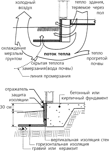 Рис. 5.9. Тепловые потери через пол, цокольные конструкции, стены и пол фундамента.