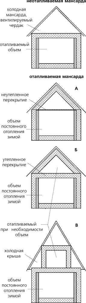 Рис. 5.3. Схемы утепления разных конструкций корпуса экодома.