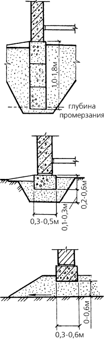 Применяются фундаменты глубокого и мелкого заглубления, незаглубленные. (Рис. 5.4)