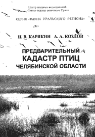 Карякин И. В., Козлов А. А. Предварительный кадастр птиц Челябинской области. - Новосибирск: Издательский дом "Манускрипт", 1999. - 421 с. с илл. и карт. Тираж 250 экз. Цена по состоянию на 01.01.2000 г. - 40 р. без стоимости пересылки.